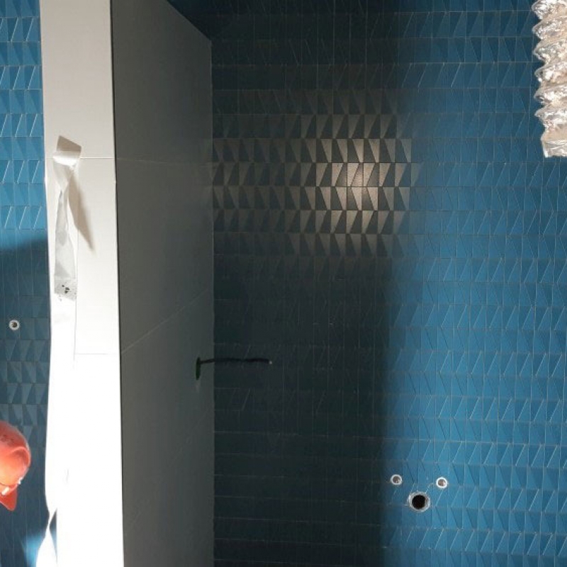 Работа по отделки санузлов. Удовлетворив высокую требовательность заказчика мы с особой тщательностью подошли к укладке мозаики. Были сложности в выравнивании стен, но наши специалисты нашли решение. Объект был сдан вовремя. Срок работ декабрь 2019 г. - март 2020 г.