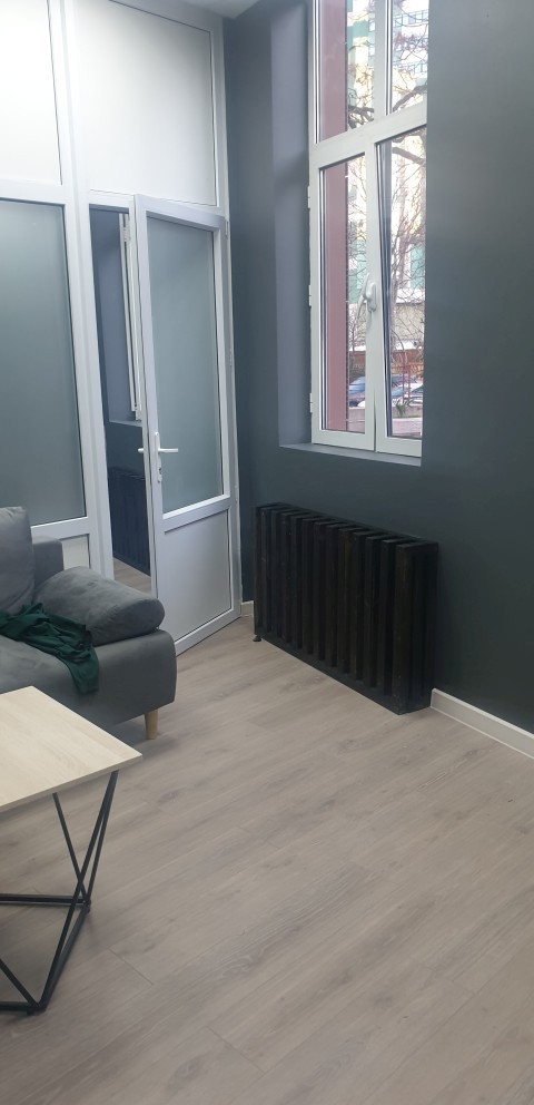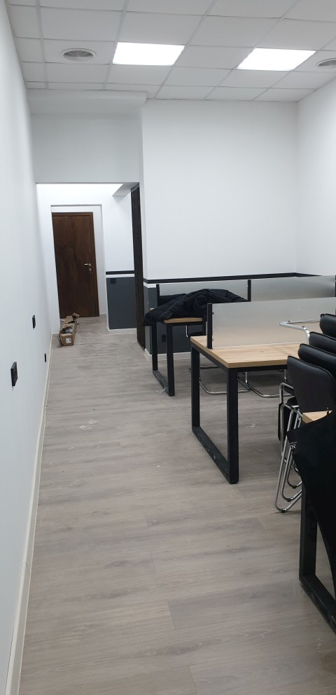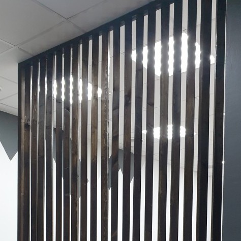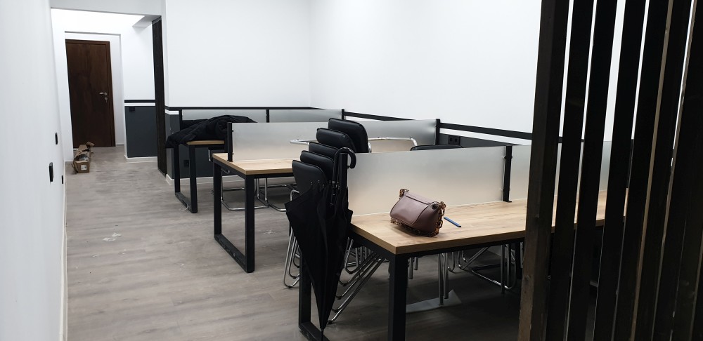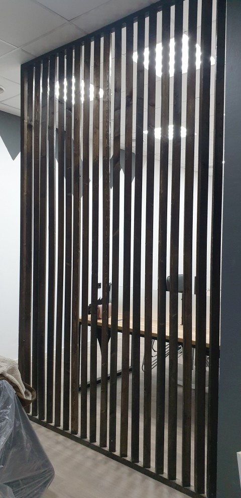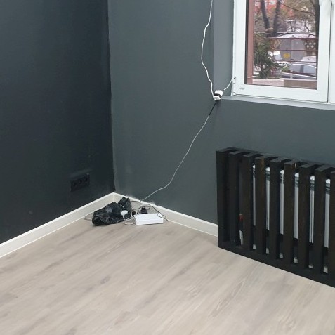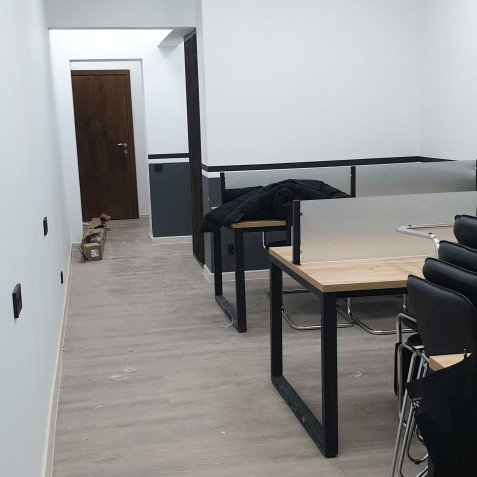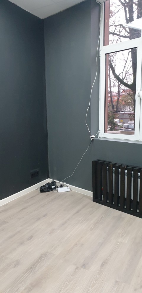 Необходимо было за одну неделю выполнить ремонт помещения под офис. Мы покрасили стены с нанесением дизайнерской линии, установили декоративные деревянные перегородки, постелили линолеум, поменяли полностью электропроводку и установили новые розетки, роутер. Сборка мебели. И мелочи такие, как уборка помещения, клининг. Были сложности в том, что клиент не мог определиться с цветом стен. В целом получился уютный офис.